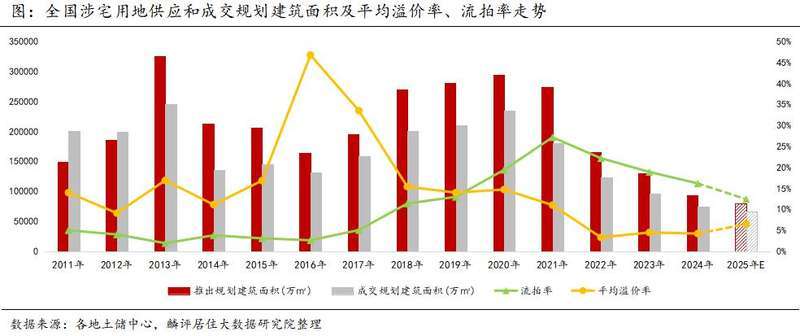 剛剛過去的2024年,全國(guó)土地市場(chǎng)供需兩端延續(xù)縮量態(tài)勢(shì),溢價(jià)率低位徘徊,流拍率雖有下降但仍處于較高位。據(jù)機(jī)構(gòu)統(tǒng)計(jì),2024年全國(guó)住宅用地成交規(guī)模降幅超兩成,土地出讓金僅為2020年高點(diǎn)四成左右。聚焦高能級(jí)城市拿地投資,成為眾多房地產(chǎn)企業(yè)的共識(shí)。