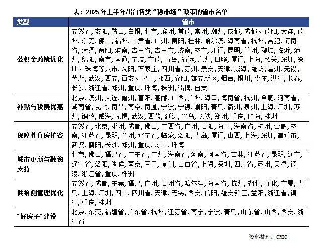 2025年上半年,中央和相關(guān)部門持續(xù)發(fā)聲釋放樓市政策利好,并落地具體舉措,涵蓋去庫存、擴(kuò)需求、新模式、化風(fēng)險等方面,例如專項債收購存量閑置土地、收購存量商品房,加力實(shí)施城中村改造和降低5年期以上LPR,推進(jìn)“好房子”建設(shè)等。