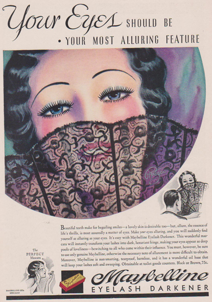1913年的時(shí)候(不要懷疑時(shí)間,就是那么早),有個(gè)叫做瑪貝爾(Mabel)的姑娘單戀上一個(gè)帥小伙兒,為了讓睫毛好看好看一點(diǎn)兒,這姑娘就用凡士林加上煤灰來為自己的睫毛上了點(diǎn)兒妝。而這個(gè)土方子,還是她從某時(shí)尚雜志上看來的。