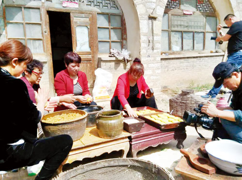 攝制組拍攝神池月餅制作過(guò)程