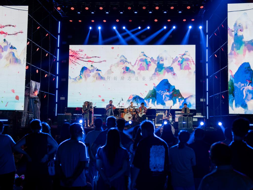 民謠音樂節(jié)演出現(xiàn)場。(受訪單位供圖) “天空中點(diǎn)點(diǎn)繁星,在森林環(huán)抱的高山上享受音樂,這個(gè)夜晚太美好了!”從武漢來此避暑的游客王女士說。