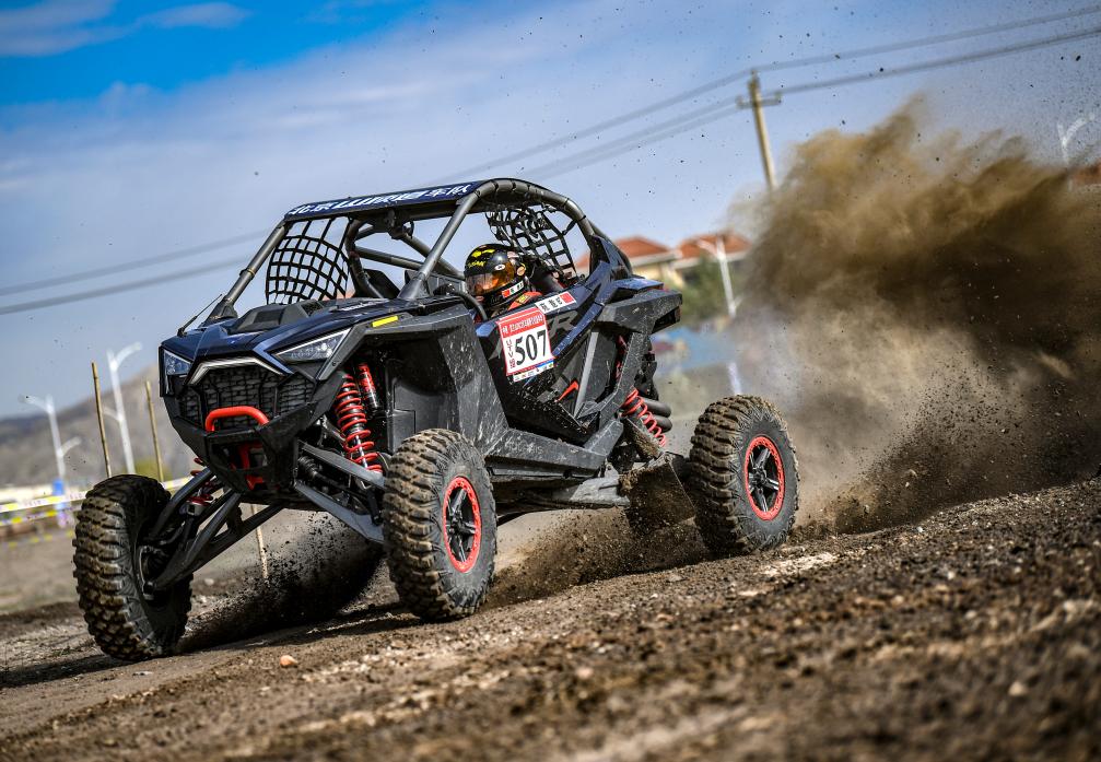 10月4日,北京山頂?shù)儡囮?duì)車手苑意在UTV組場地排位賽中。新華社記者 馮開華 攝