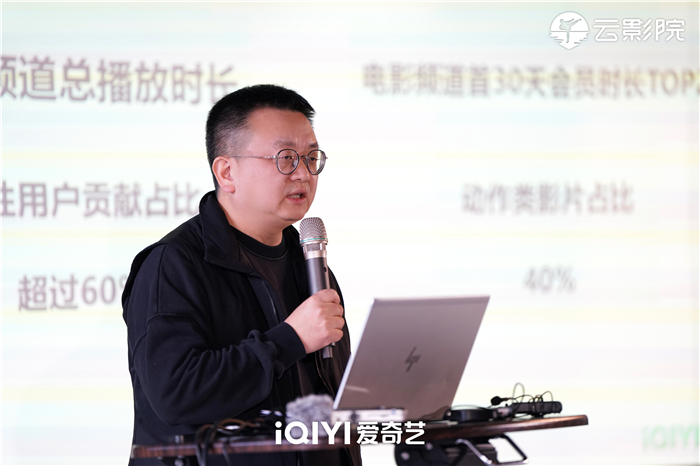 談及推出“動(dòng)作高手季”電影廠牌,楊海濤表示這是基于實(shí)際的平臺(tái)用戶消費(fèi)洞察。從用戶畫像來(lái)看,男性用戶為愛奇藝電影業(yè)務(wù)貢獻(xiàn)的播放時(shí)長(zhǎng)超過60%,屬于電影消費(fèi)的主流用戶群,且對(duì)動(dòng)作影片具有一定偏好。從會(huì)員播放時(shí)長(zhǎng)排名來(lái)看,上線30天影片會(huì)員播放時(shí)長(zhǎng)排名前20的電影中,動(dòng)作類型影片占比達(dá)到40%。從2023年云影院影片用戶付費(fèi)訂購(gòu)表現(xiàn)來(lái)看,動(dòng)作類型影片的訂購(gòu)數(shù)占到所有影片的91%。