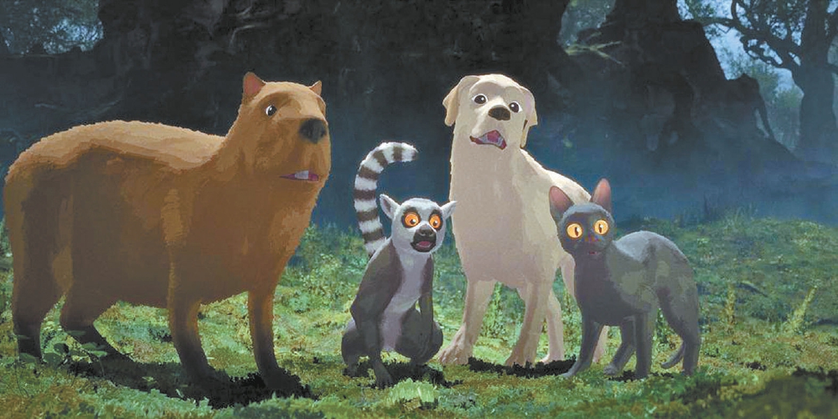 除此之外,片中一切的動物形象及發(fā)聲,都來自導(dǎo)演金茲持續(xù)多年的認(rèn)真研究。這位拉脫維亞導(dǎo)演作為一名貓狗雙全的“鏟屎官”,自然熟知小黑貓和拉布拉多犬的習(xí)性;而卡皮巴拉、環(huán)尾狐猴和蛇鷲的神態(tài)、行為和聲音,則全部來自他守在動物園的觀察記錄。導(dǎo)演本來還打算將現(xiàn)實中鯨魚的素材轉(zhuǎn)入blender(一款免費開源三維圖形圖像軟件)進行渲染,但后來還是沒忍住加了些人為設(shè)計,將其更加神秘化了。