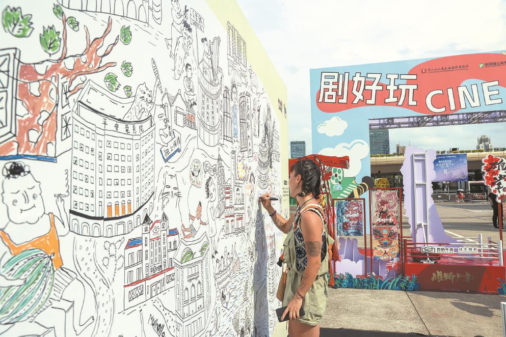 胡子拉碴的警員阿Sir、動畫電影《馴龍高手》中的無牙仔、充滿懸念的“醬園弄現(xiàn)場”……在上海展覽中心,立有一塊由插畫師Rosá玫瑰與市民共創(chuàng)的“我的電影故事”畫板,一筆筆手繪中埋下很多城市彩蛋與弄堂故事,更有影迷在空白插畫區(qū)記錄下自己的“私影史”。畫板右上角有一處方方正正的電影院簡筆畫,連進場路線都用火柴人標注清楚,Movieland小程序工作人員韓語指著這處手繪告訴記者:“一位影迷過來,說‘怎么能沒有我們滬北電影院呢?我也要畫一個’,他就趴在畫板畫了快半小時,昨天太陽那么大,背都曬紅了。”