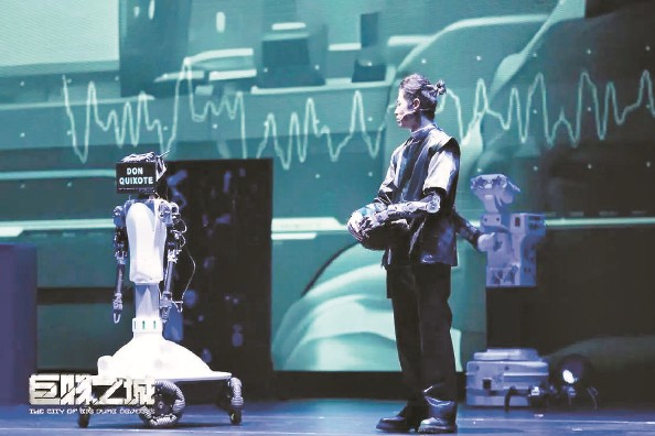 這是國內(nèi)首部機(jī)器人戲劇《巨物之城》的演出現(xiàn)場。演員與機(jī)器人一同完成了80分鐘的表演,謝幕后,臺下觀眾涌上舞臺,爭相與“堂吉訶德”“麒麟臂”“嵐”等機(jī)器人合影、問好。機(jī)器人——這個(gè)在日常生活中還頗為“遙遠(yuǎn)”的形象,第一次以情感表達(dá)者的身份,走近了普通觀眾。