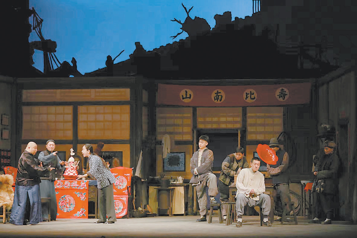 舞臺遠(yuǎn)處,老北京城門樓子的剪影橫亙天際;近處,木窗灰墻圍起一間極有年代感的平房;平房里,虎妞正在和父親劉四爺爭吵——這段經(jīng)典劇情出自家喻戶曉的《駱駝祥子》。
