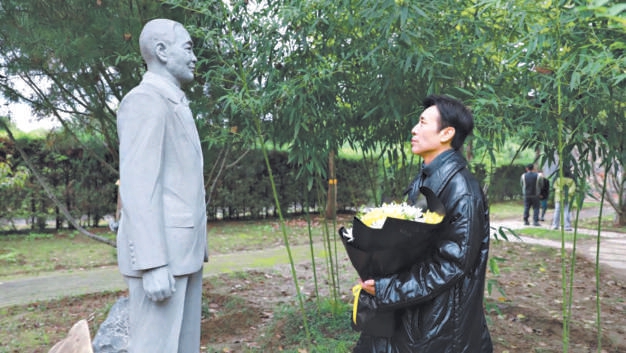 于和偉代表主創(chuàng)團隊向吳石烈士敬獻鮮花