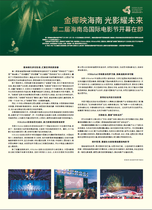 海南島面向世界,是中國(guó)的開(kāi)放之島,也是未來(lái)之城。以這座城市為背景舉辦的第二屆海南島國(guó)際電影節(jié)開(kāi)幕在即,讓我們?cè)诙张?yáng)中,相約海南,共赴這場(chǎng)別具一格的光影盛宴,感受光影四射的影像魅力,推動(dòng)電影產(chǎn)業(yè)蓬勃發(fā)展。