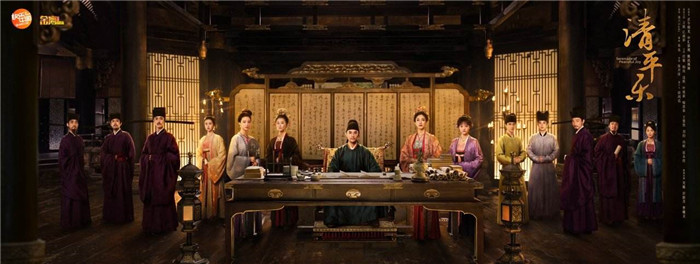 《清平樂》播出后,憑借服飾道具的精美與還原度高,而屢屢被各路評論賦予好評:從女性的發(fā)髻男性的幞頭、頭冠配飾朝服家居服等等,每個人物、每個場景都可以講出應(yīng)有的規(guī)制與講究。仁宗及皇后的海報宣傳畫,幾乎就是按照館藏的人物坐像進行的復(fù)刻,連坐像背后的畫作都做到盡力還原,有評論表示“除了臉,其他一模一樣”。