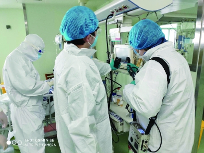劇組在金銀潭醫(yī)院現(xiàn)場(chǎng)采音