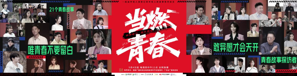 由國家廣播電視總局網(wǎng)絡(luò)視聽節(jié)目管理司等指導(dǎo)的網(wǎng)絡(luò)綜藝《當(dāng)燃青春》將于5月4日開播。節(jié)目以青春視角進(jìn)行故事講述,展現(xiàn)當(dāng)代青年敢想敢為、善作善成的奮進(jìn)風(fēng)采。