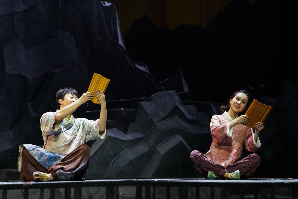 5月27日,大型說唱音樂劇《愚公移山》在位于北京的中央歌劇院首演。音樂劇《愚公移山》是2022年度河南省重點文藝創(chuàng)作項目,由濟源產(chǎn)城融合示范區(qū)黨工委宣傳部、文化廣電和旅游局出品,北京大學民族音樂與音樂劇研究中心創(chuàng)制。全劇采用說唱的藝術(shù)形式,以傳承和弘揚愚公移山精神為線索,講述了當代大學生將傳統(tǒng)文化納入現(xiàn)代視野,不斷打造新生活、開拓新境界的新時代奮進故事。新華社記者 彭子洋 攝影報道