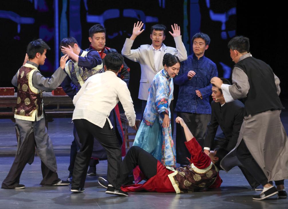5月11日,中國(guó)人民大學(xué)附屬中學(xué)分校的師生在演出大型四幕話劇《吶喊》。新華社記者 殷剛 攝