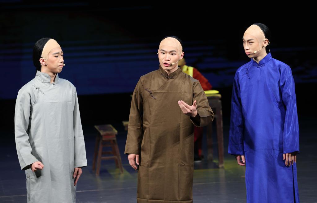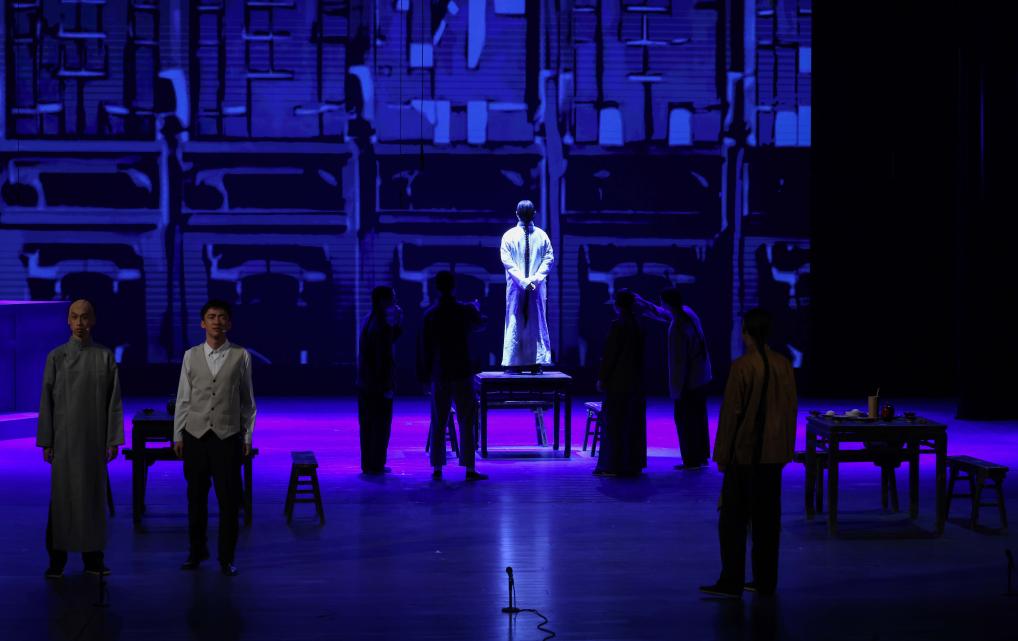 當(dāng)日,中國(guó)人民大學(xué)附屬中學(xué)分校戲劇實(shí)踐課程開(kāi)展成果展示,高中學(xué)生們?cè)诒本﹪?guó)安劇院演出大型四幕話劇《吶喊》,生動(dòng)演繹了魯迅筆下阿Q、孔乙己、祥林嫂等眾多經(jīng)典形象。