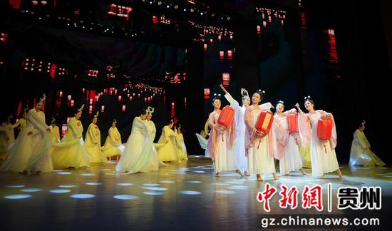 由多彩貴州風(fēng)藝術(shù)團表演的開場舞《花好月圓夜》。貴州日報天眼新聞記者鄭宇瀟 攝