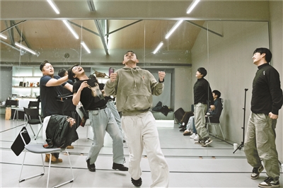 抗戰(zhàn)題材作品常常自帶歷史沉重感,而話劇《狼煙北平》則嘗試通過年輕演員的演繹,將歷史的厚重與現(xiàn)實生活狀態(tài)結合。此外,作品中所涉及的“隱秘戰(zhàn)線的殘酷、特務工作的神秘與驚險,革命運動中動人的真情、蕩氣回腸的民族氣節(jié),底層小人物的掙扎與生存智慧”,也為該劇提供了更加豐富的表達層次。導演張肖以“文三兒”為例,“作為一個人力車夫,他為了自己的生計、為了自己的尊嚴生活著。在當時混亂的時局下,他一直有一個堅定的信念,就是活著比什么都重要。他身上這種很野蠻,但是同時又非常人性的、接地氣的氣質(zhì),深深地吸引了我們?!痹趶埿た磥?,“當今社會,大家不可避免地會遇到工作上的壓力、生活中的煩惱,希望通過這部戲,讓觀眾在劇中找到力量,讓我們勇敢地微笑面對生活,就像我們這個戲里第一首歌的名字一樣——《迎風而笑的笨拙》。那種笨拙是一種可愛、一種勇敢、一種堅韌?!?/p>