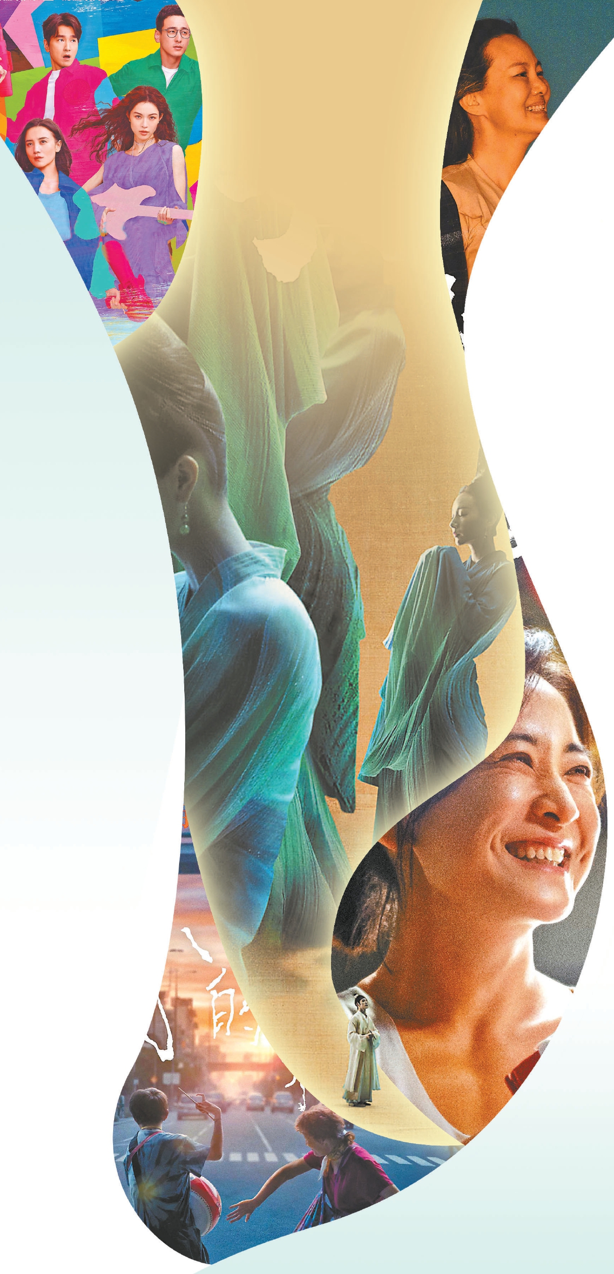 張?jiān)5褜?dǎo)演的《倒倉(cāng)》將傳統(tǒng)京劇與青春成長(zhǎng)相結(jié)合,“倒倉(cāng)”既是戲曲演員在變聲期的必經(jīng)之路,也是少年們?cè)诿鎸?duì)未來時(shí)的迷惘。故事在對(duì)傳統(tǒng)的繼承中突破,男可扮旦角,女可唱老生,每個(gè)人的人生都由自己掌握。周莉亞、韓真執(zhí)導(dǎo)的《只此青綠》將舞蹈詩劇這一小眾藝術(shù)推向大眾市場(chǎng),利用鏡頭、實(shí)景、特效等電影手法讓更多觀眾認(rèn)識(shí)了天才少年希孟和他筆下的《千里江山圖》,影片也呈現(xiàn)出一幅鮮活生動(dòng)的北宋人文圖景。在楊圓圓導(dǎo)演的紀(jì)錄片《女人世界》中,跳著Cha- Cha的美籍華裔老年舞團(tuán),每個(gè)人身上都散發(fā)出自信、明媚、積極的生命力。影片用“她92歲,仍年輕”形容舞者余金巧,既有歷盡千帆后的無畏,也有活在當(dāng)下的愜意與灑脫。