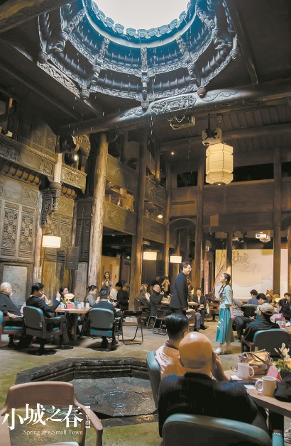暑期,沉浸式音樂劇《小城之春》計劃在上海松江廣富林遺址文化公園老宅持續(xù)演出?!缎〕侵骸穼⒂?00年歷史的集賢坊·知府樓化作小劇場,觀眾穿梭于實(shí)景院落,與劇中角色同行于百年老墻、青石板路。五一假期,《小城之春》試演10場,觀眾人數(shù)遠(yuǎn)超預(yù)期,55歲以上的輕老族尤其感興趣?!肮耪热魏挝枧_裝置都真實(shí),觀眾進(jìn)入古宅,瞬間進(jìn)入上世紀(jì)三十年代?!睆堄嗾f。