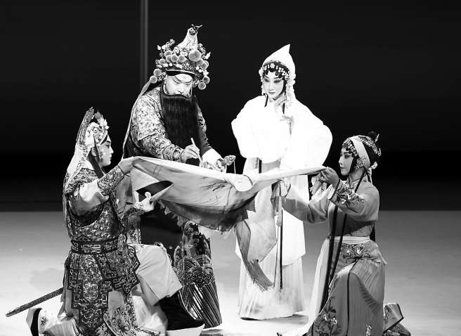“劇本乃一劇之本,《顏真卿》的劇本基礎(chǔ)非常好,不僅有強(qiáng)烈的矛盾沖突,故事情節(jié)也非常抓人,劇情從一開始就進(jìn)入了緊張狀態(tài),之后的設(shè)計(jì)又環(huán)環(huán)相扣?!敝旖B玉特別提及,新戲創(chuàng)作有時(shí)會(huì)“把唱詞寫得別別扭扭”,《顏真卿》有難得的詩意,而且接地氣,格式、韻腳都很契合京劇音樂韻律,“《顏真卿》的聲腔強(qiáng)調(diào)一個(gè)‘韻味’,有韻味才能吸引人?!敝旖B玉同時(shí)注重結(jié)合作品的時(shí)間背景,融入管子音樂等標(biāo)志性的西北地域特色,在彰顯“京朝派”醇厚底蘊(yùn)的基礎(chǔ)上,為全劇注入一抹熾烈濃艷的唐時(shí)氣韻。