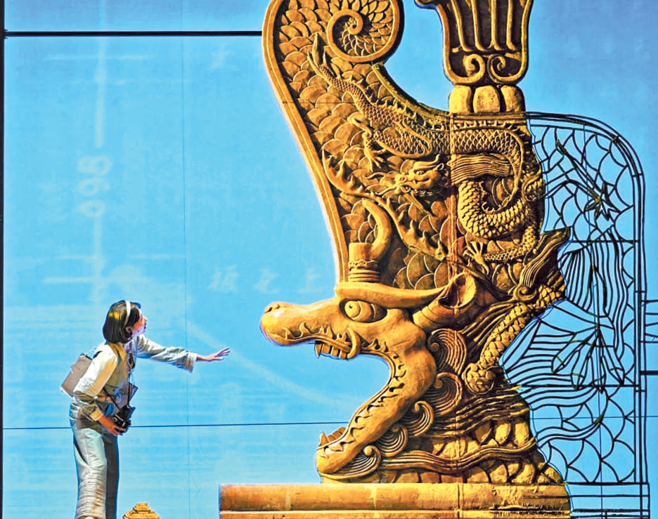 王琛透露,舞臺(tái)上關(guān)鍵的古建筑構(gòu)件均嚴(yán)格按照1∶1的真實(shí)比例復(fù)原制作,當(dāng)它們懸置于觀眾面前,一種視覺上的“沖擊力”油然而生,“觀眾能直觀體會(huì)到劇中人物每日工作的物理尺度和精神重量,體會(huì)測(cè)繪隊(duì)員是以怎樣的血肉之軀攀爬、丈量并挽留這份巍峨的文明。”舞臺(tái)地面,北平時(shí)期中軸線的建筑脈絡(luò)化為起伏線條,如紙張般弧形掀起,“寓意著古城文明在戰(zhàn)火中飄搖欲飛卻又根基深植的命運(yùn)。建筑的‘實(shí)’代表文明遺產(chǎn),圖紙的‘虛’代表傳承意志,虛實(shí)明暗的銜接過渡,共同凝固了那段驚心動(dòng)魄的歷史。”(記者 高倩)