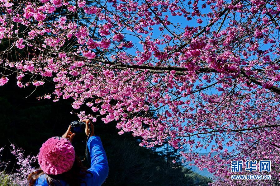 2月29日,游客在武陵農(nóng)場賞花。初春的臺灣,氣溫回升,位于海拔1700多米的臺中武陵農(nóng)場,漫山遍野的櫻花競相開放,美不勝收,吸引了四面八方的游客前來觀賞。 新華社記者張國俊 攝