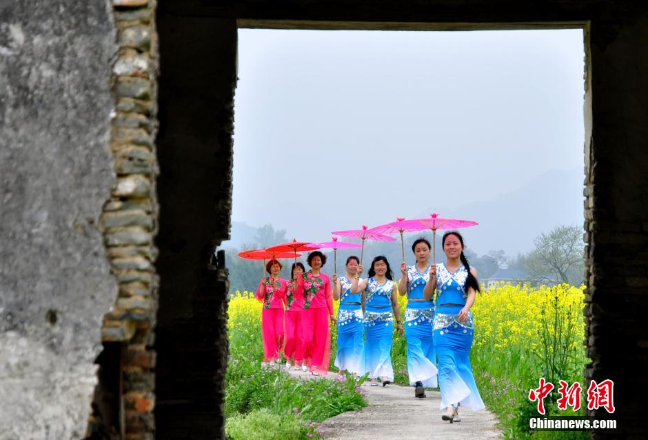 3月20日,江西省德興市??阪?zhèn)杜村婦女在田間花?!白咝恪?。當日,江西德興市??阪?zhèn)杜村一批家庭婦女以千畝油菜花海為舞臺,展示自己的才藝形象,希望宣傳家鄉(xiāng)的自然生態(tài)與人文歷史,擴大旅游知名度和影響力。德興市??阪?zhèn)杜村交通便利,自然風光優(yōu)美,村內有歷史古跡和名木古樹。 胡敦煌 攝