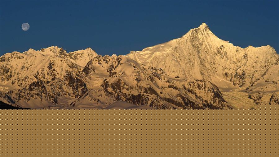 這是3月25日清晨拍攝的梅里雪山“日月同輝”景觀。梅里雪山位于滇藏交界的云南省迪慶藏族自治州德欽縣境內(nèi),是世界自然遺產(chǎn)“三江并流”的主要自然景觀之一。梅里雪山常年云霧籠罩,太陽光只在少數(shù)天晴的清晨照射在雪山頂上,形成絕美的“日照金山”美景。有時(shí)月亮尚未落山,太陽已經(jīng)升起,更是形成了難得一見的梅里雪山“日月同輝”奇觀。新華社記者 王長山 攝