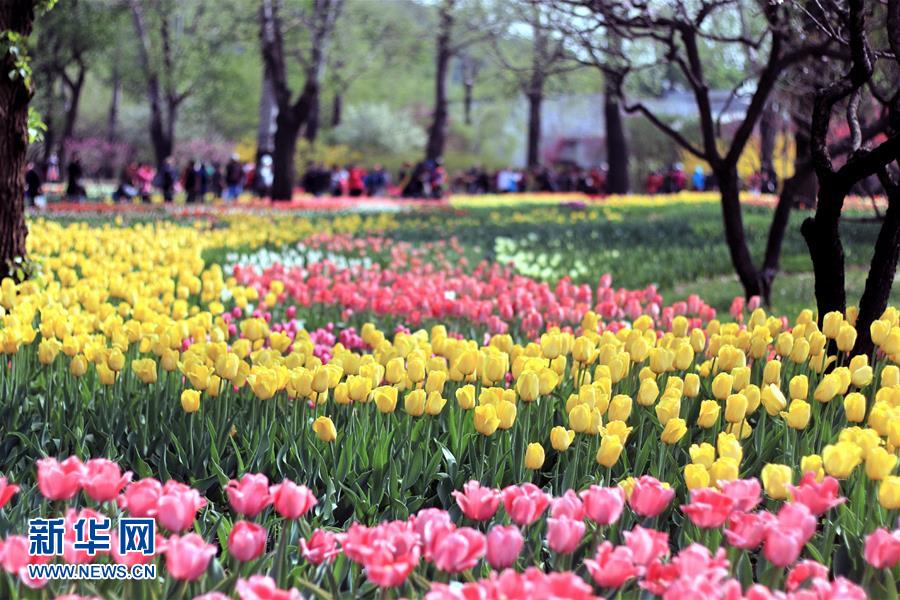 北京植物園內(nèi)盛開的郁金香花(4月11日攝)。近日,北京植物園內(nèi)的郁金香競相開放,吸引眾多游人前來觀賞。 新華社記者 李明放攝