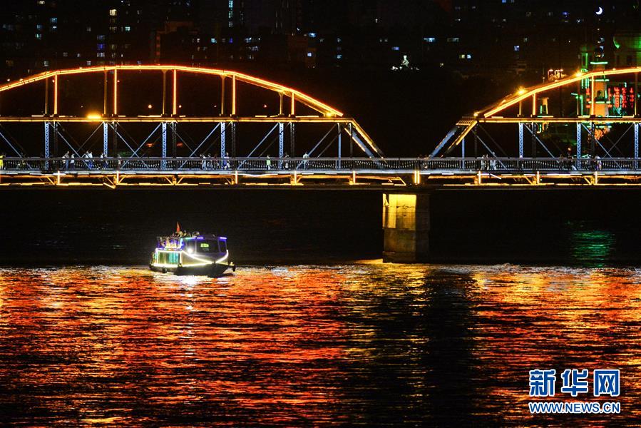 6月14日,一艘游輪從黃河蘭州段中山橋下穿過。自6月12日起,蘭州黃河游輪夏季夜航航線正式開通。據了解,作為黃河蘭州段水上旅游重點線路,該航線由蘭州市城關區(qū)蘭州港碼頭和白塔山碼頭始發(fā),每晚20時起開行,全程約6公里,運行時長50分鐘左右。游客可以乘坐豪華游輪欣賞黃河夜景,感受蘭州黃河風情線別樣魅力。新華社記者 陳斌 攝