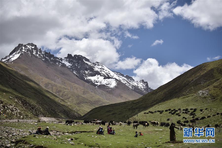 青海玉樹(shù)藏族自治州曲麻萊縣境內(nèi)的尕朵覺(jué)悟神山(6月15日攝)。新華社記者吳剛攝