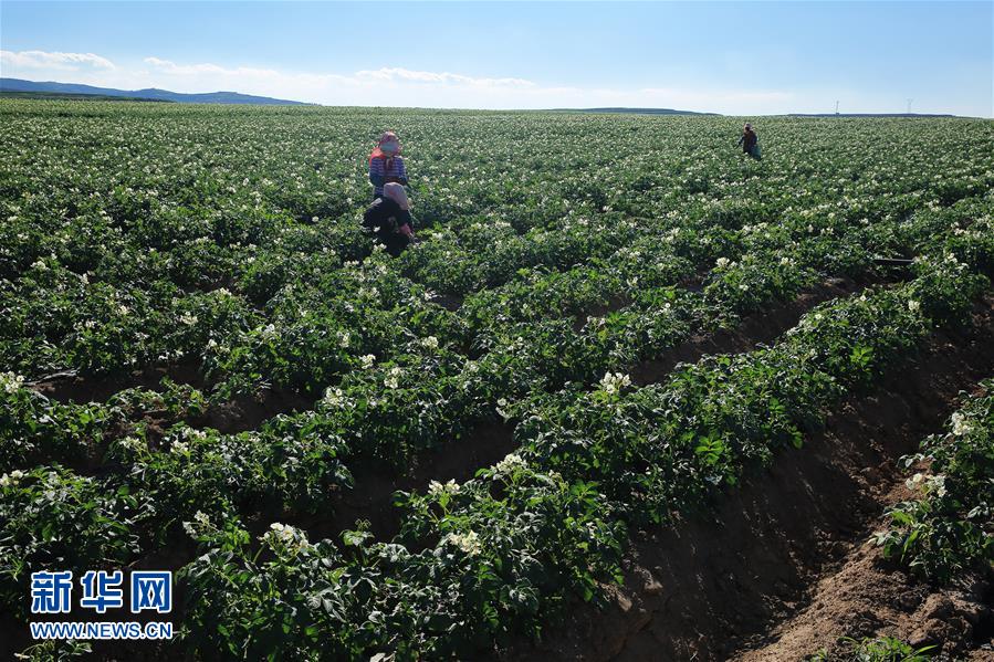 盛夏時節(jié),中國馬鈴薯之鄉(xiāng)甘肅定西的馬鈴薯進入開花期,眾多白色的花朵扮美田野。 新華社發(fā)(陳永剛 攝)