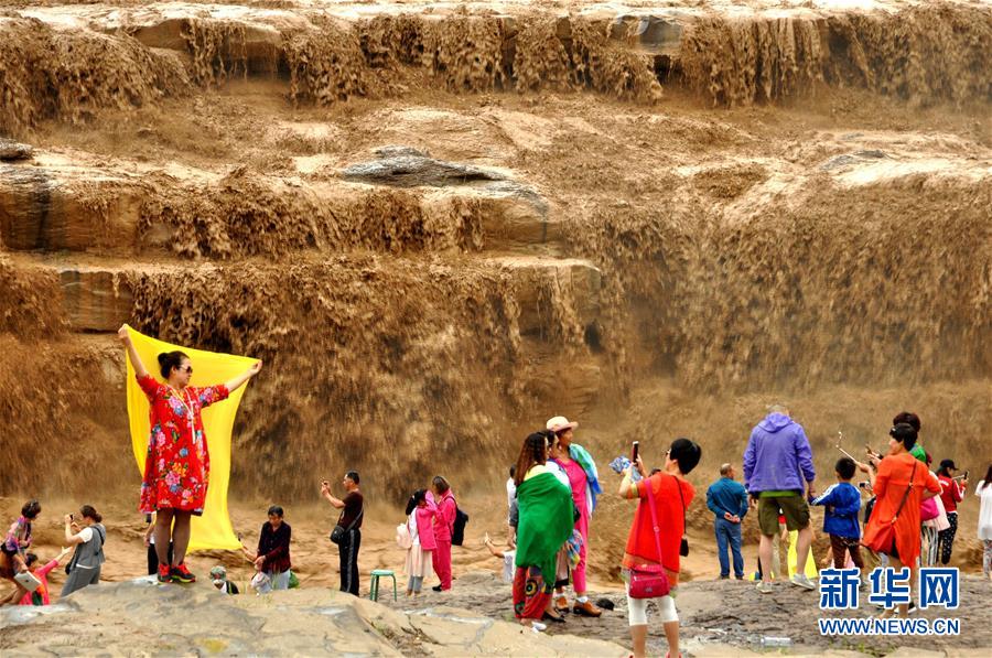 受上游強降雨影響,黃河壺口瀑布水勢大漲,主副瀑布連成一片。