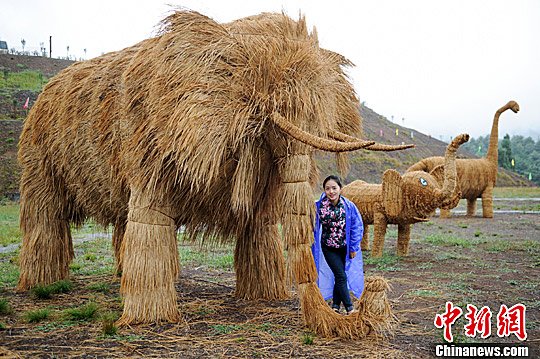 8月31日,赫章縣夜郎國(guó)家森林公園展出的稻草卡通形象。中新社記者 賀俊怡 攝