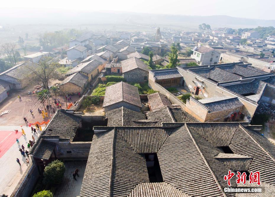12月10日,航拍位于江西金溪縣有著600多年歷史的中國(guó)歷史文化名村、中國(guó)傳統(tǒng)村落竹橋古村,俯瞰全村,形似一柄巨扇。該村現(xiàn)保存有明代所建民居8幢,明代祠堂1幢,其余為清代建筑,青磚灰瓦,樸實(shí)素雅,為贛派建筑最典型的代表。村前溪水長(zhǎng)流,良田萬頃,村后茂林修竹,鳥鳴樹幽,身歷其境,如入畫中。傅建斌 攝
