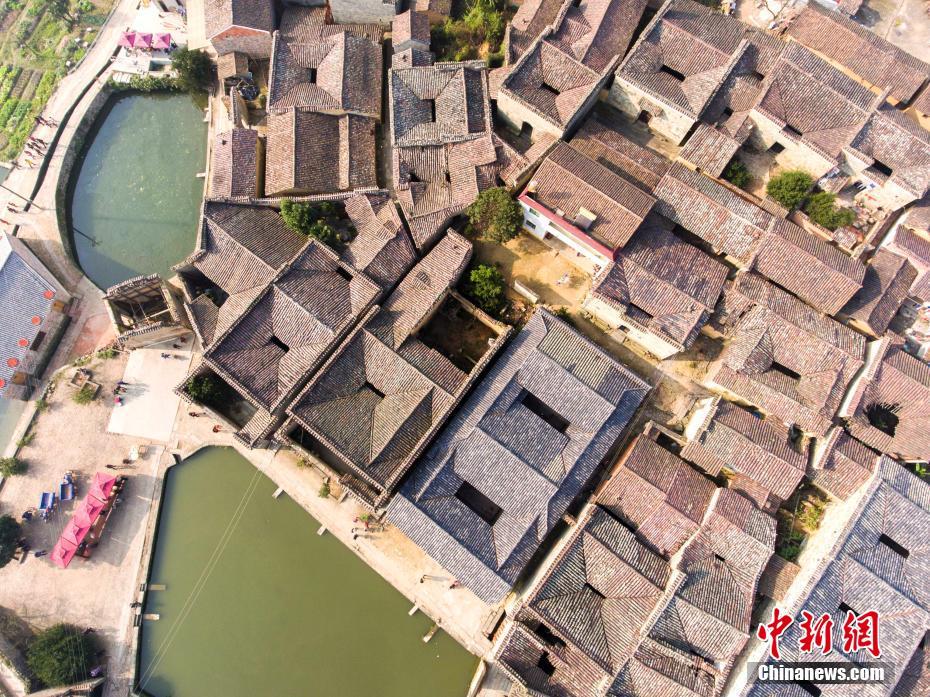 12月10日,航拍位于江西金溪縣有著600多年歷史的中國(guó)歷史文化名村、中國(guó)傳統(tǒng)村落竹橋古村,俯瞰全村,形似一柄巨扇。該村現(xiàn)保存有明代所建民居8幢,明代祠堂1幢,其余為清代建筑,青磚灰瓦,樸實(shí)素雅,為贛派建筑最典型的代表。村前溪水長(zhǎng)流,良田萬(wàn)頃,村后茂林修竹,鳥(niǎo)鳴樹(shù)幽,身歷其境,如入畫(huà)中。傅建斌 攝