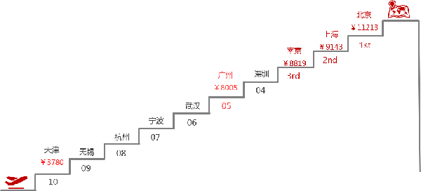 受多重因素影響,2017年春節(jié)期間的出境游線路價格較往年有一定幅度的上漲,個別熱門線路的報價較平日上浮了1倍以上,從而一定程度上推高了出境游者用于購買旅游產(chǎn)品(旅游團(tuán)、自助游套餐等)的人均開支?!秷蟾妗窋?shù)據(jù)顯示,2017年春節(jié)出境游人群用于購買旅游產(chǎn)品的支出平均為8721元/人,同比有1倍多的增長。主要客源城市出境游人均支出排名方面,北京以11213元/人的人均支出位居榜首,也是唯一支出過萬元的城市。南京以8819元/人躋身前三名,超過了深圳和廣州兩個熱門一線城市。