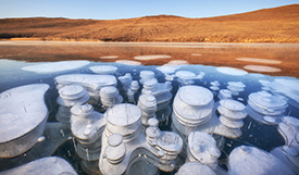 人民網(wǎng)訊 當?shù)貢r間2020年11月25日,攝影師兼向?qū)tanislav Tolstnev拍攝到俄羅斯貝加爾湖“氣泡冰”奇景,夢幻般的氣泡,呈現(xiàn)了一種奇異的美麗,讓人感嘆大自然的神奇。這些“冰泡”是由湖底植物釋放出的沼氣(甲烷)在上升過程中因極寒氣溫導致冰封速度過快,被“鎖”在冰層之中而形成的。