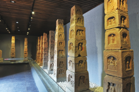 走進長治市博物館,仿佛進入了歷史的長廊,從創(chuàng)世之初、石之美者、塑土成陶、晶玉之瓷到吉金佳器,5個單元的館內(nèi)陳列展覽盡顯了長治古老的文明。其中的“創(chuàng)世之初”主要反映早期人類在長治地區(qū)的生產(chǎn)生活痕跡。展品有義和、花坡兩處舊石器時代文化遺址和多處新石器時代文化遺址,表明了長治是中華文明的早期發(fā)祥地之一?!笆勒摺标惲械挠袷褡炼傻钠魑铮饕鐾劣谖髦?、春秋、戰(zhàn)國墓葬中,種類豐富,精美非凡。多為祭祀、禮儀、裝飾、陳設用品,有極高的歷史價值和藝術價值?!八芡脸商铡闭龟惖奈奈镏饕翘掌鳎瑥男率鲿r代遺址中出土的體現(xiàn)“龍山文化”特色的陶器,到商代、漢代,直至隋唐之際的陶器,時間跨度非常之大。種類涵蓋飲食器、貯藏器等生活實用器和專為殉葬而制作的各類明器。尤其是用作明器的三彩陶器,凡與死者在世生活有關的如建筑、家具、牲畜和人物等無不具備,包羅萬象,真實再現(xiàn)了當時各個階層人士的不同生活面貌?!熬в裰伞闭龟惖挠兴宕那啻善鳌⑻拼陌状?,以及宋、金、元代的瓷器。據(jù)介紹,珍藏的宋、金、元時期瓷器品種數(shù)量多,南、北窯系均有,主要以霍州窯和磁州窯系列為主,其中,長治的八義窯(磁州窯系)生產(chǎn)的紅綠彩瓷是我國北方地區(qū)較具特色的釉上彩瓷?!凹鸺哑鳌闭故镜膭t是青銅器,以商、周器物為主。長治出土的商代器物與二里崗、殷墟時期銅器風格一致,表明了晉式銅器的精美藝術造型和高超的工藝水平。