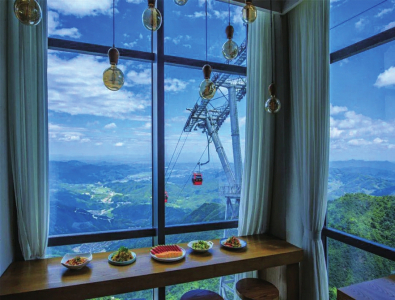 葛仙村度假區(qū)的美食一定不能錯(cuò)過(guò),來(lái)到二樓的云端餐廳,透過(guò)180度全景落地玻璃,可以將葛仙村的美景一覽無(wú)余,原木色餐桌搭配星空頂,臨坐在窗前,品嘗各色美食補(bǔ)充能量,與家人或朋友把酒言歡,享受味蕾上的滿足感。