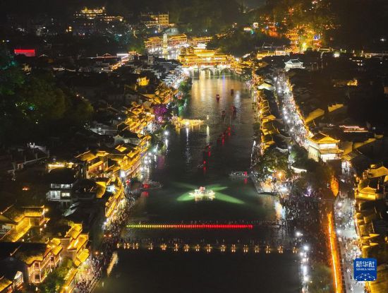 湖南省湘西土家族苗族自治州鳳凰古城持續(xù)推進旅游環(huán)境提質(zhì)升級,規(guī)范旅游市場,完善旅游服務(wù)設(shè)施。每到夜晚,鳳凰古城沱江兩岸燈光璀璨,美景如畫,吸引眾多游客前來感受“夜鳳凰”的獨特魅力。