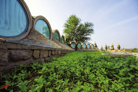 利用碾盤、碑頭等舊石刻和礦山廢機(jī)具打造景觀藝術(shù)作品數(shù)百件;將“煤改電”后廢棄的鍋爐房,創(chuàng)新改造為云岡圖書館并面向社會開放;用廢棄水泥塊和各種舊磚塊、舊石雕,修建了頗具歐式風(fēng)格的云岡文保大樓圍墻,尤其是由城市廢舊地下排水管等材料打造成的一排排蝸牛公寓格外引人注目。蝸牛公寓頂棚上安裝的一個個圓形玻璃窗,是用篩煤設(shè)備改造成的,上面鋪設(shè)的太陽能發(fā)電板,在自給自足的同時還可向景區(qū)供電。蝸牛公寓聯(lián)排房間均是由廢棄管道改造成的,大廳內(nèi)有會客廳、洗漱池、公廁等設(shè)施,地下則利用原有礦山廢棄菜窖改造成放映室、酒吧、餐廳等。蝸牛公寓不遠(yuǎn)處還有用廢舊鍋爐改造而成的膠囊公寓,在綠草叢中別有風(fēng)趣。這些建筑極大地豐富了云岡文化內(nèi)涵,開創(chuàng)了全國首家世界遺產(chǎn)地利用固體廢物營造景區(qū)景觀的新路,對大同市乃至全國景區(qū)生態(tài)環(huán)境保護(hù)有著深刻的教育和借鑒意義。