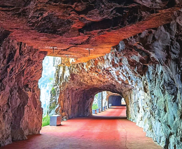 第二處的錫崖溝掛壁公路位于山西晉城市陵川縣境內,公路整體曲折蜿蜒,呈“之”字形,分三層攀上山頂,險峰云海,景色壯觀。而錫崖溝村則是四面環(huán)山、高山飛瀑,風光絕佳。在公路修通前,由于交通閉塞,錫崖溝村的居民們世代過著與世隔絕,自給自足的生活。目前,錫崖溝村是王莽嶺景區(qū)的一個景點,在游覽完王莽嶺后可以乘坐游覽車穿過錫崖溝掛壁公路。但由于錫崖溝掛壁公路地勢十分險要,所以游覽車一般不在途中過多逗留。