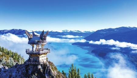 喀納斯湖中心的變色湖是一處特別的景觀,它是天地間的一面鏡子,隨著周圍四季風(fēng)景變換而呈現(xiàn)不同顏色。五月還是青色,六月則轉(zhuǎn)藍綠,七月乳白色加入,八月墨綠,九月、十月如翡翠一樣色彩斑斕,十一月冰雪封湖一片雪白,至來年四五月又是一個輪回。但八月初,喀納斯湖景區(qū)海拔1400米以上便可能降雪,雪期會長至下一年六月,因此,游客要想賞喀納斯的美,六月和七月是最佳旅游時間。有許多游客是穿羽絨服而來,拍照時脫下外套,潔白的裙子映在湖光山色間,說一句仙女之姿,絲毫不為過。
