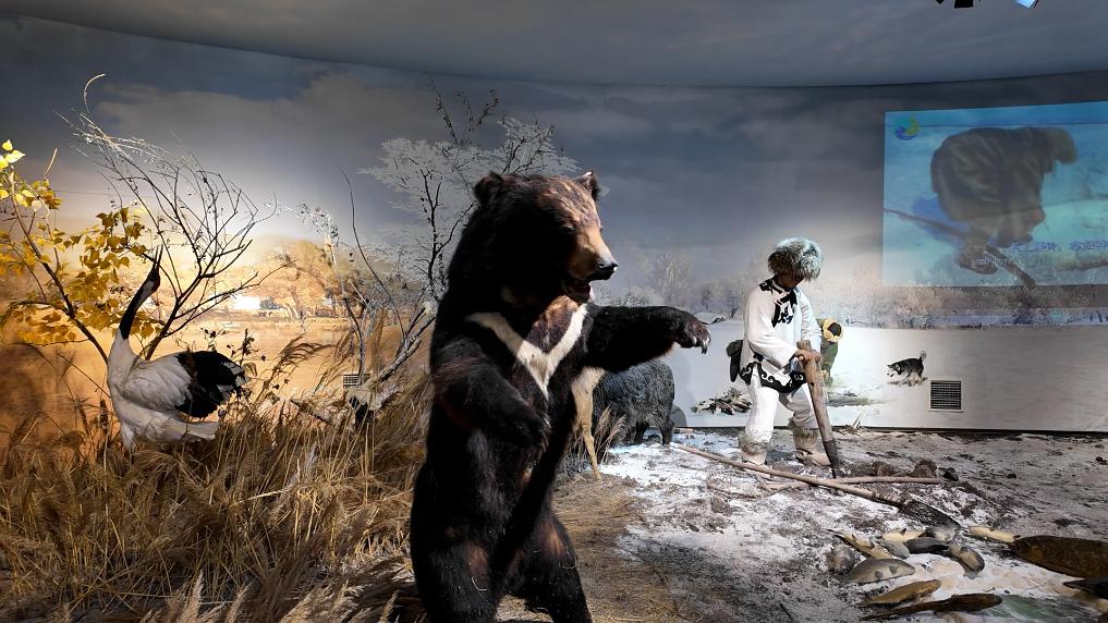 同江市赫哲族博物館內(nèi)復(fù)原的赫哲族先民生活場(chǎng)景。新華社記者 吳悠 攝