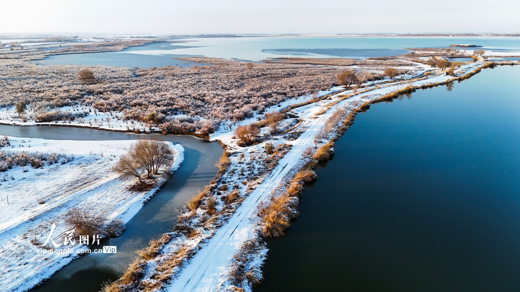 2024年11月22日至23日,新疆昌吉回族自治州呼圖壁縣迎來一場降雪。雪后的呼圖壁縣小海子濕地銀裝素裹,湖面半冰半水,交相輝映,成群的野鴨在濕地覓食嬉戲,一幅幅生態(tài)美景映入眼簾,美如畫卷。陶維明攝(人民圖片網(wǎng))