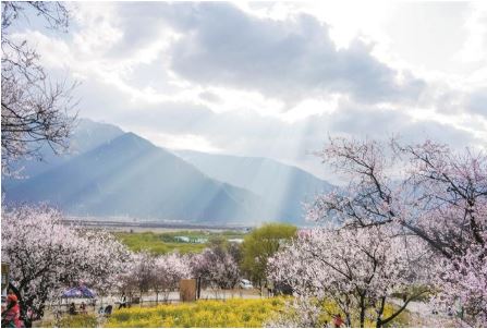 西藏林芝市被譽(yù)為“雪域江南”。近日,隨著天氣回暖,桃花競(jìng)相盛開,吸引眾多游客前來賞花,感受春天的氣息。圖為3月29日在西藏林芝嘎拉村拍攝的春日景色。