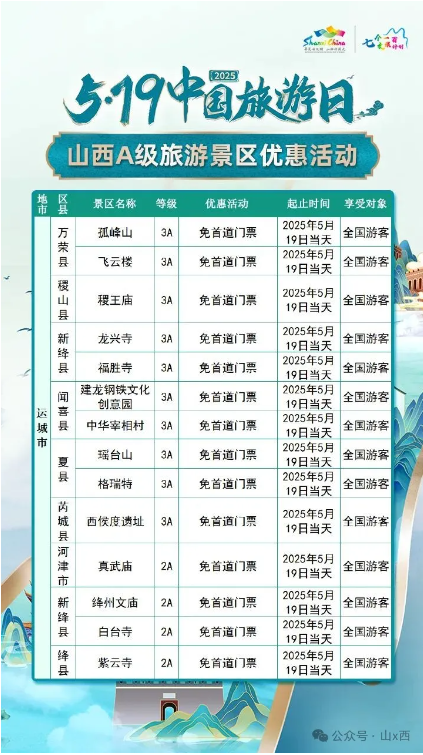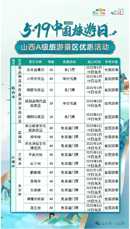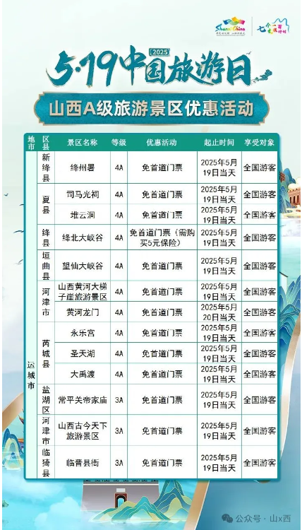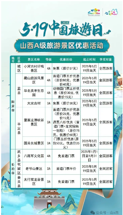 5·19中國(guó)旅游日 | 山西A級(jí)旅游景區(qū)面向全國(guó)游客優(yōu)惠