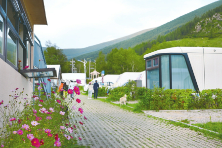 特色住宿業(yè)態(tài)則從高端到普惠多點(diǎn)開花,滿足不同客群需求。獨(dú)具匠心的設(shè)計(jì)融入自然景觀,讓游客在青磚灰瓦間品茶論道,感受山風(fēng)的輕撫,體驗(yàn)“結(jié)廬在人境”的閑趣。其中,光明寺村“早種晚收”露營基地可以說是具有代表性的一處。在地方鎮(zhèn)政府和鄉(xiāng)村振興戰(zhàn)略的支持下,露營基地依托東臺(tái)溝生態(tài)資源,建成28輛房車營位并配套露天電影、自助燒烤區(qū),智能充電樁、星空觀景臺(tái)、生態(tài)衛(wèi)生間等現(xiàn)代化設(shè)施,年均接待游客超2萬人次,成為社交平臺(tái)上的“網(wǎng)紅打卡地”,在戶外休閑旅游和特色住宿市場中建立了良好的聲譽(yù)和強(qiáng)大的競爭力。