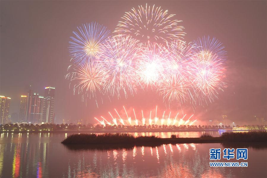 2017年1月1日夜晚,長沙橘子洲附近湘江上空綻放絢麗焰火。當(dāng)晚,湖南長沙橘子洲舉行焰火晚會(huì)慶祝新年到來。整場(chǎng)焰火晚會(huì)主題為“多彩星城、魅力長沙”,焰火燃放時(shí)間約20分鐘。 新華社記者 龍弘濤攝